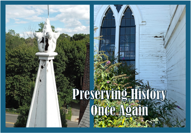 The contractor will add insulation to exterior walls, replace siding, repair and paint the steeple, and replace the badly rotted ornate finials atop the steeple and the eight spires.
